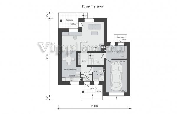 | Размеры дома: | 12.32м×11.32м |